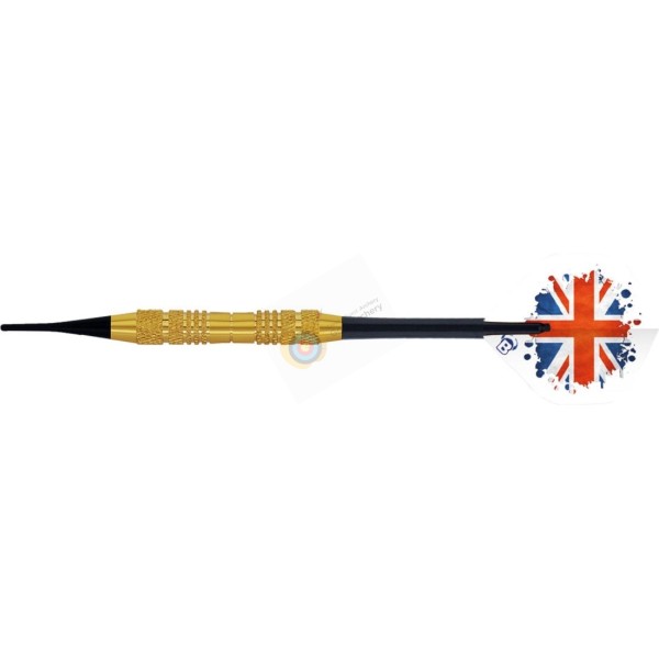 La fléchette soft "Metis" au design classique est associée à un corps en laiton, les tiges en aluminium et les ailettes Powerflite...
