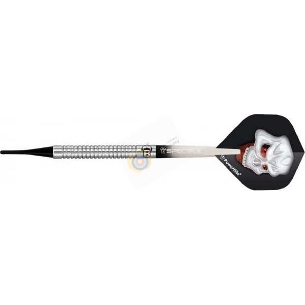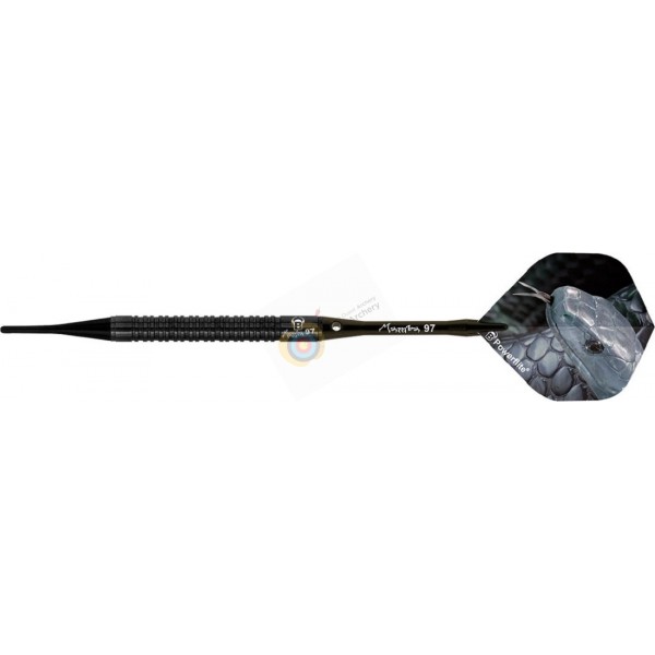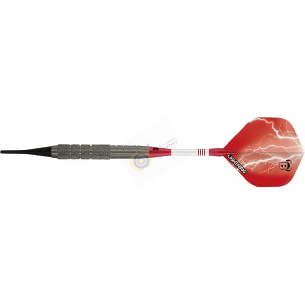 La fléchette soft "Metis" au design classique est associée à un corps en laiton, les tiges en aluminium et les ailettes Powerflite...