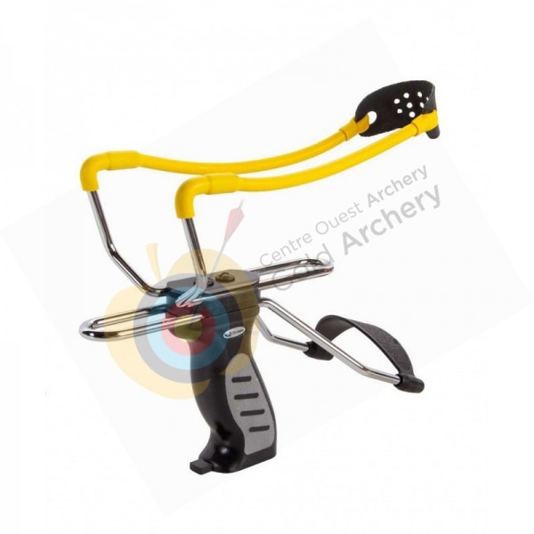 Fronde métallique avec poignée ergonomique en bois. Inclus divers point de visée avec fibre optique et un système spécial de visée lazer.