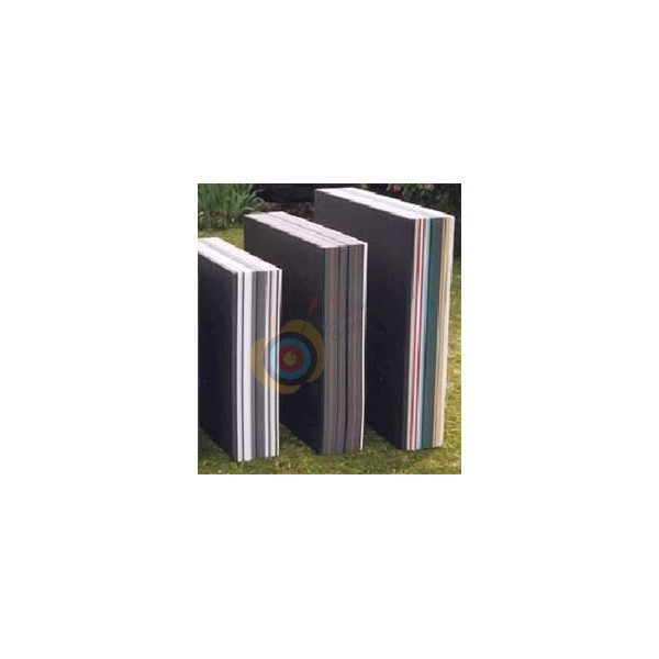 Les cibles Fawofield sont constituées d'un assemblage de lamelles de mousse de différentes densités collées entre elles. Cette variation de densité des lamelles assure un freinage performant de la fléche tout en limitant les contraintes liées à l'arrêt