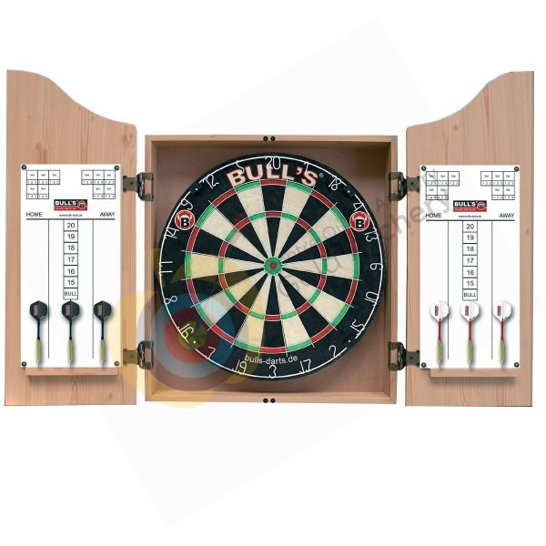 Armoire en MDF avec un jeu de fléchettes ,une cible en sisal classique de BULL, comprenant deux jeux de fléchettes en acier, un tableau d’écriture et un chiffon