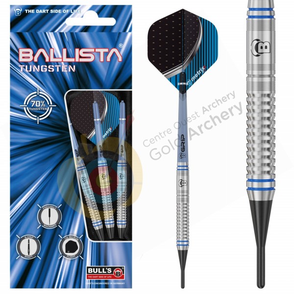 Fabriqué en laiton, le Mission dispose d'un placage chromé pour une meilleure prise en main. Dans la moitié arrière et avant, le corps toujours mince a un fut strié. Elle est disponible en trois poids différents. Livrées dans l'étui pratique BULL'S Cone avec tiges en aluminium Simplex et ailettes Powerflite.